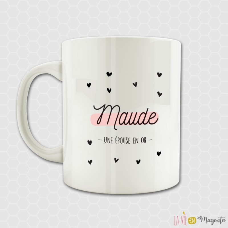 Idée cadeau sympa pour un mariage, un anniversaire ou toutes autres occasions à offrir à son épouse en or! Ce mug est personnalisable, envoyez-nous le prénom de votre épouse et nous l'imprimerons sur celui-ci.
