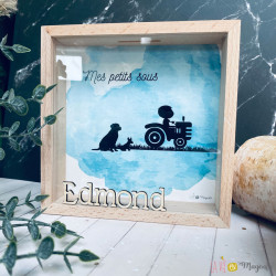 Une jolie tirelire en bois personnalisée avec le prénom en lettres découpées et un fond au motif de votre choix. Un cadeau unique et décoratif, parfait pour une naissance, un anniversaire ou une décoration de chambre d’enfant.