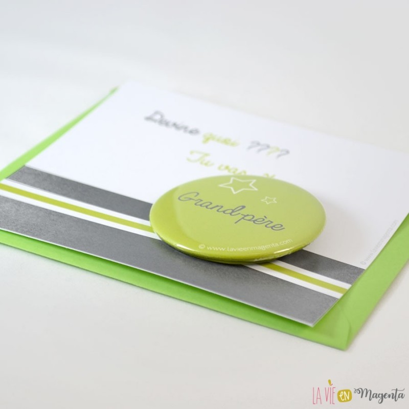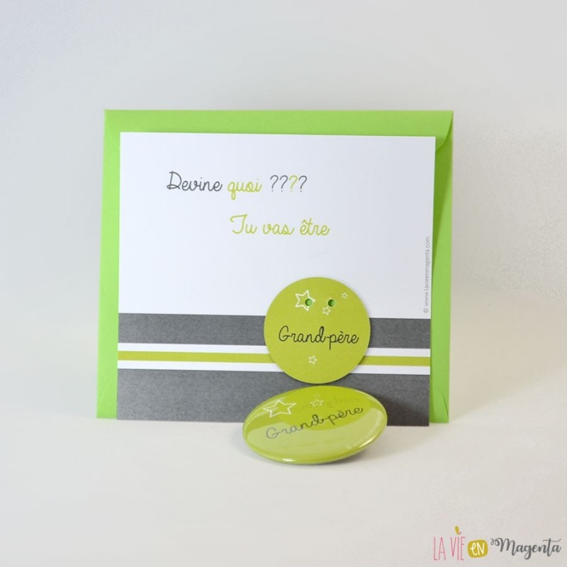 Cette carte est accompagnée d'un badge à épingle que la personne portera fièrement suite à l'excellente nouvelle…