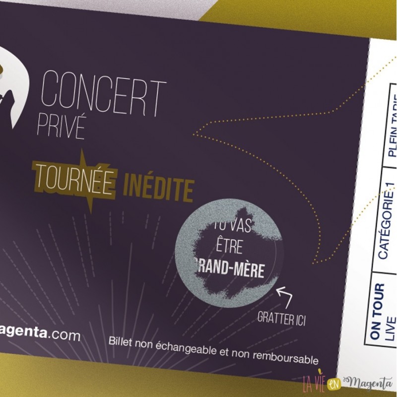 Annonce de grossesse originale, billet de concert avec zone à gratter