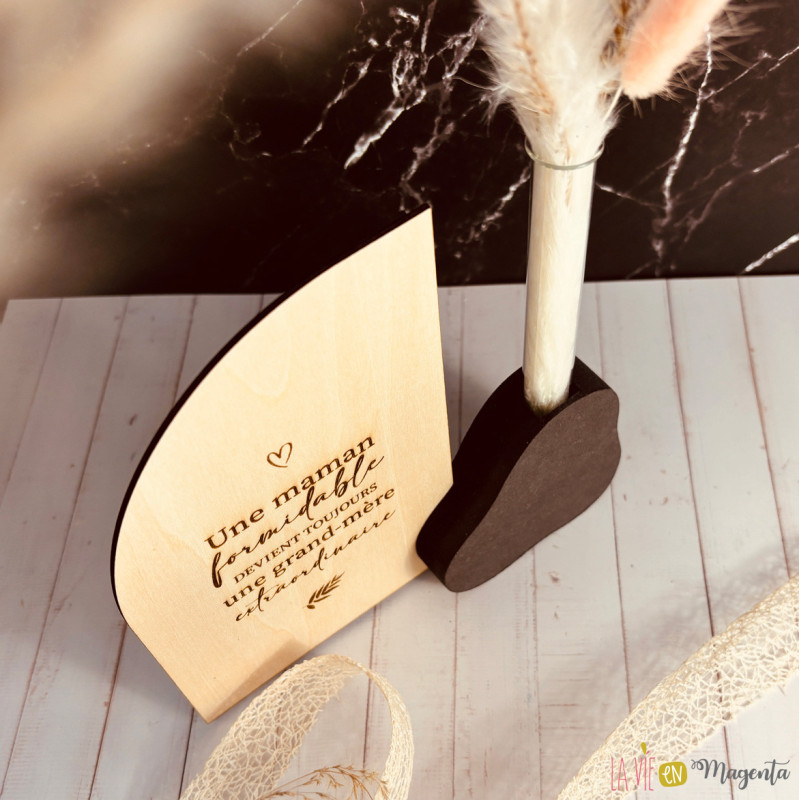 Pancarte Gravée avec Soliflore et Fleurs Séchées – Cadeau Idéal pour une grand-mère lors de la fête des mères, des grands-mères ou pour toute autre occasion.