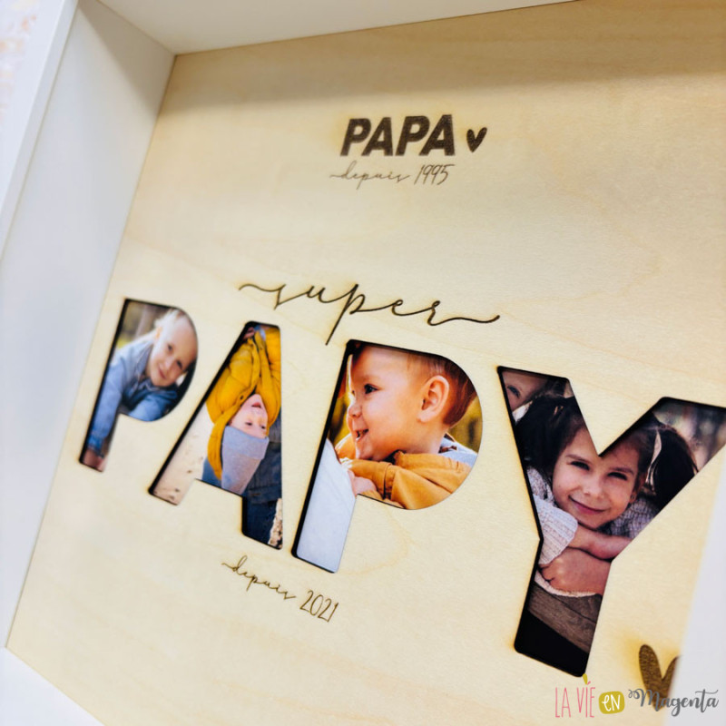 Parce que certains titres comptent plus que tout, ce cadre photo personnalisé “Papa depuis [année]” - “Super Papy depuis [année]” est le cadeau parfait pour marquer le temps qui passe et les moments partagés.