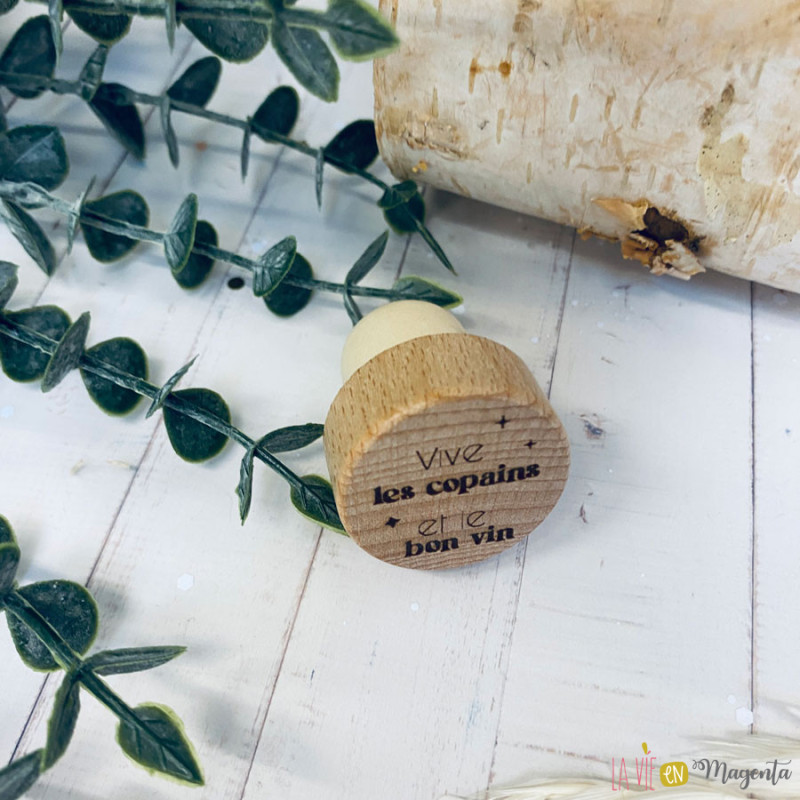 Parfait pour conserver une bouteille entamée tout en ajoutant une touche personnelle, ce bouchon de vin est entièrement personnalisable : chaque gravure est réalisée avec soin dans notre atelier à Battice.