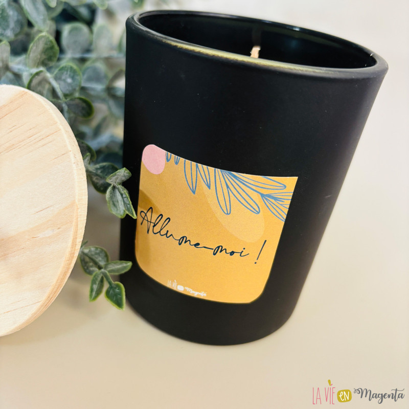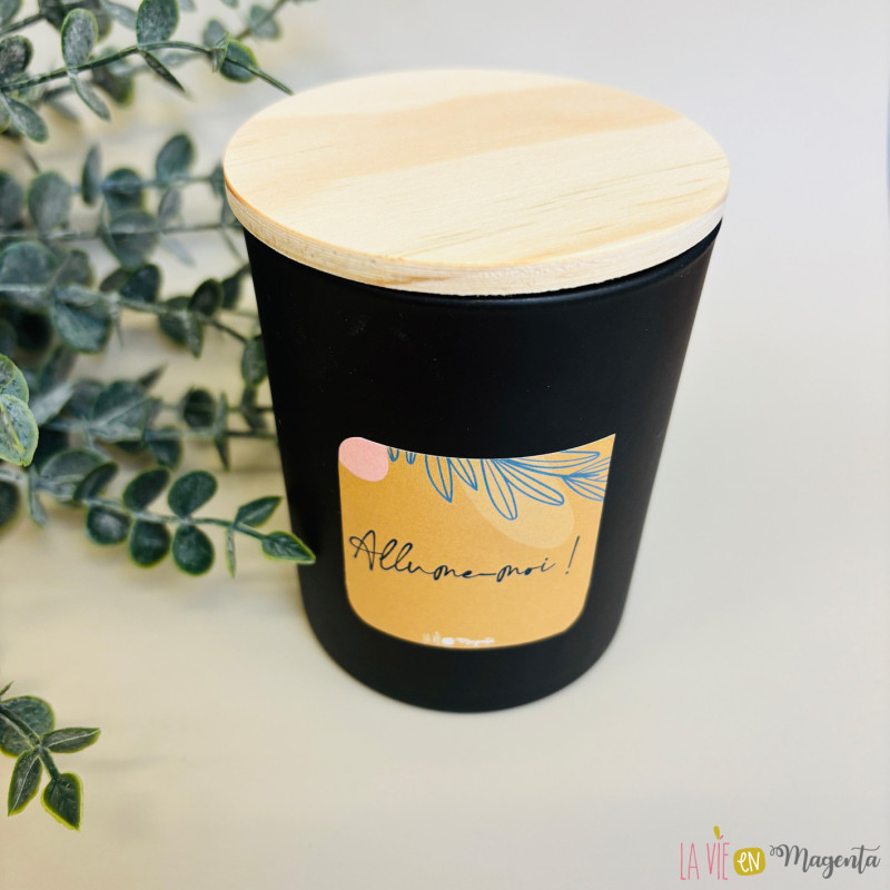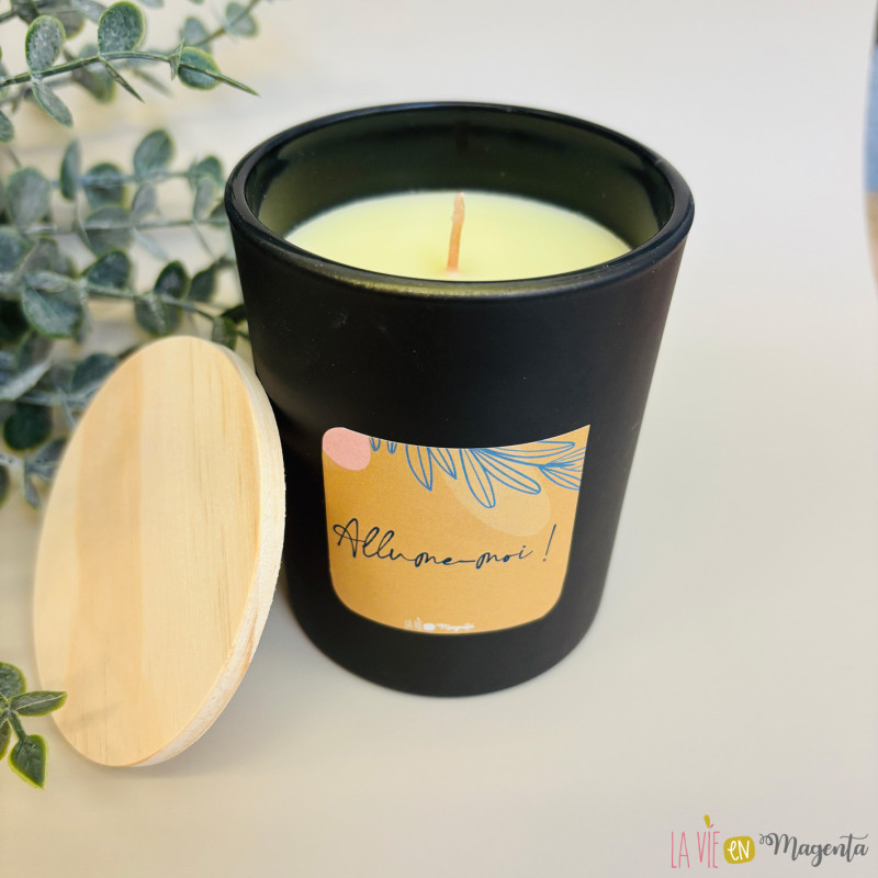 Bougie parfumée dans un joli contenant en verre noir mat avec couvercle en bois. Message à l’avant. Un cadeau élégant et plein de peps, parfait pour toutes les occasions. Idéale pour offrir à une amie, une maman, une marraine ou simplement pour se faire plaisir. Collection disponible avec différents messages et en version diffuseur à bâtonnets.
