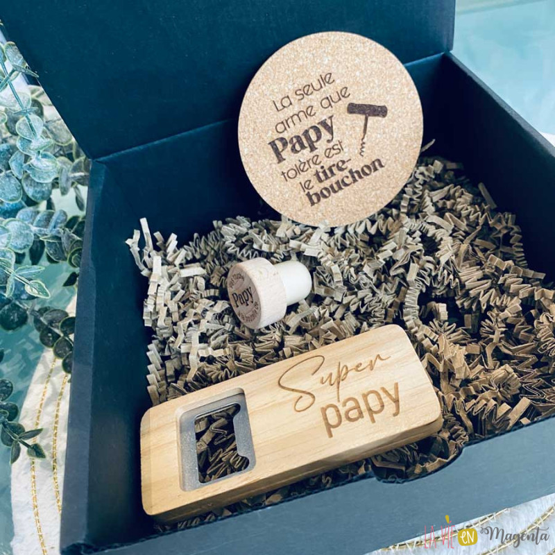ATTENTION : ce format de coffret permet d'y glisser une petite bouteille de bière (hauteur 18 cm max)