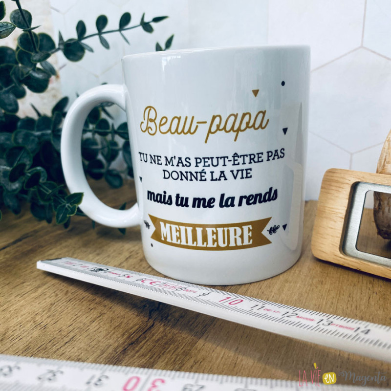 • 1 mug avec le message : « Beau-papa, tu ne m’as peut-être pas donné la vie mais tu me la rends meilleure