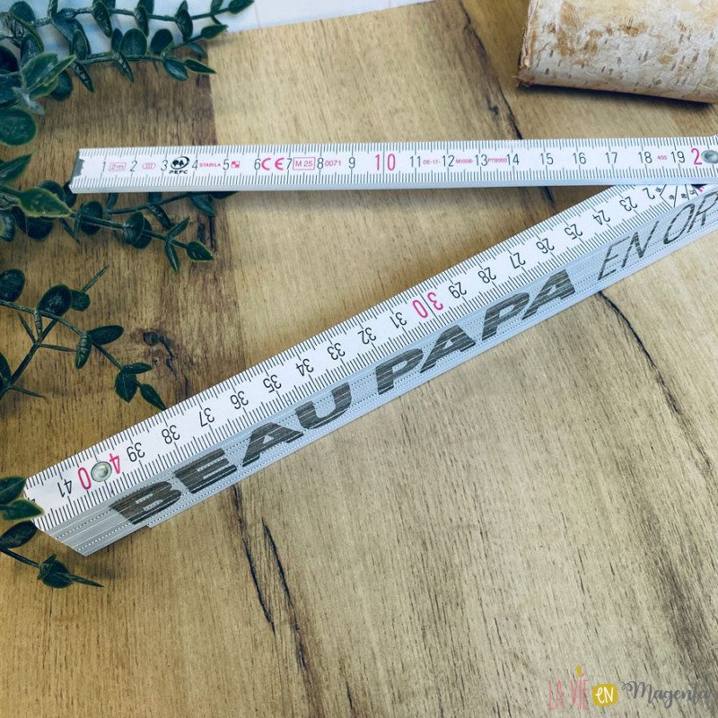 Le coffret contient également des accessoires pratiques du quotidien : un mètre gravé, un porte-clé et un décapsuleur. Des objets utiles qu’il pourra garder toujours près de lui.