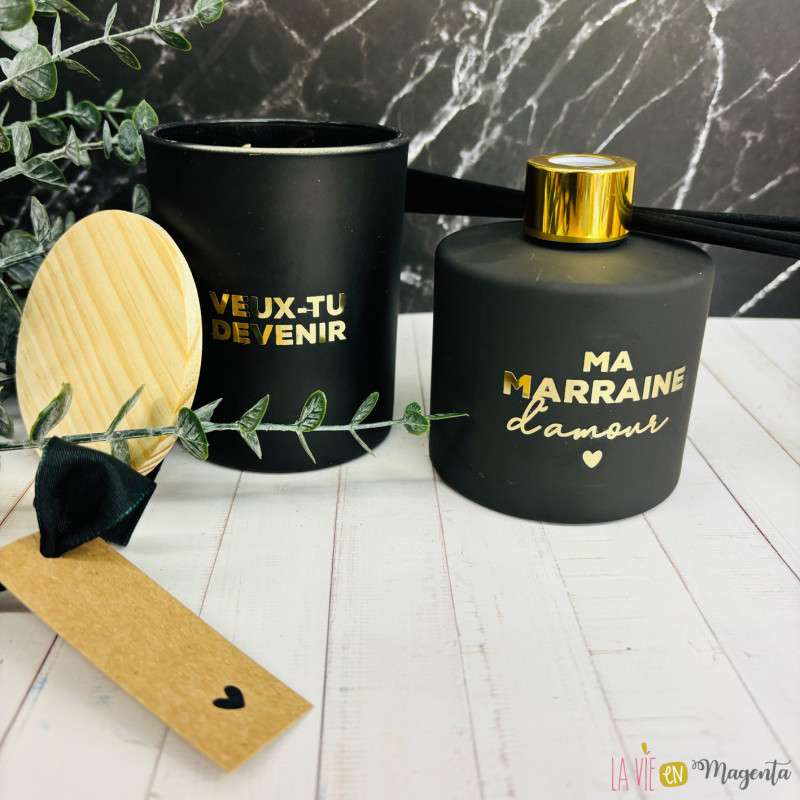 Différentes versions : 'Marraine en Or' ou 'veux tu devenir ma marraine'