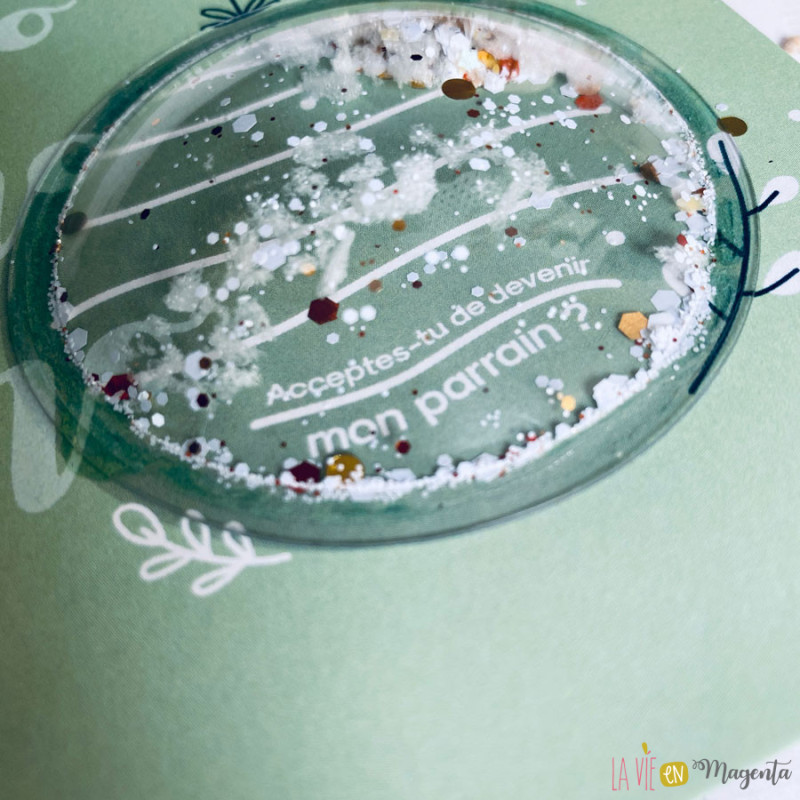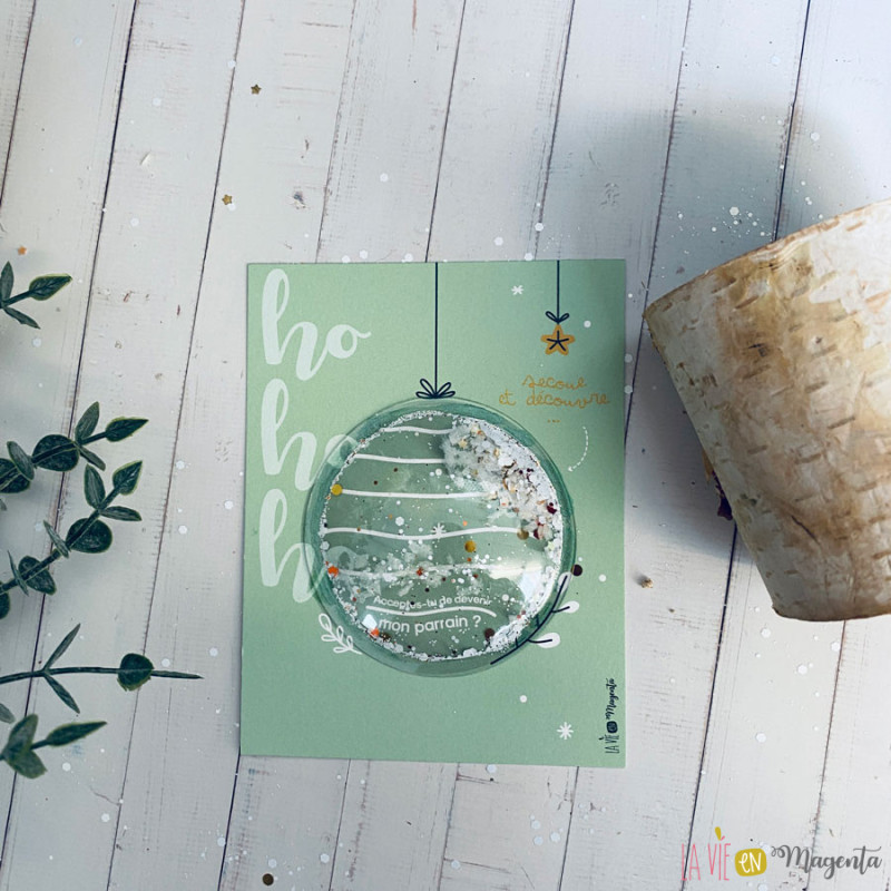 Faites une demande de parrain pleine d’émotion avec cette carte originale à secouer.