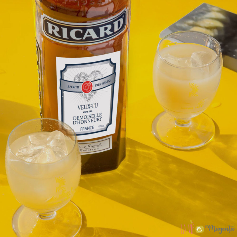 Cette étiquette autocollante parodique, inspirée de l’univers du pastis, est parfaite pour une demande pleine d’humour et de complicité.
