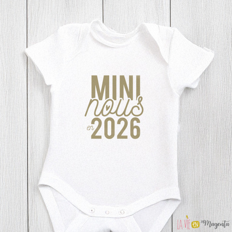 Vous attendez un tout petit ? Ou vous voulez surprendre votre famille avec un magnifique cadeau ? Laissez-vous surprendre par ce body naissance 'mini nous en 2026' - taille naissance 50/56