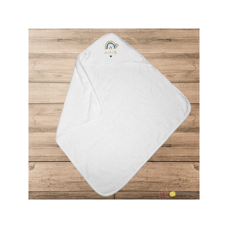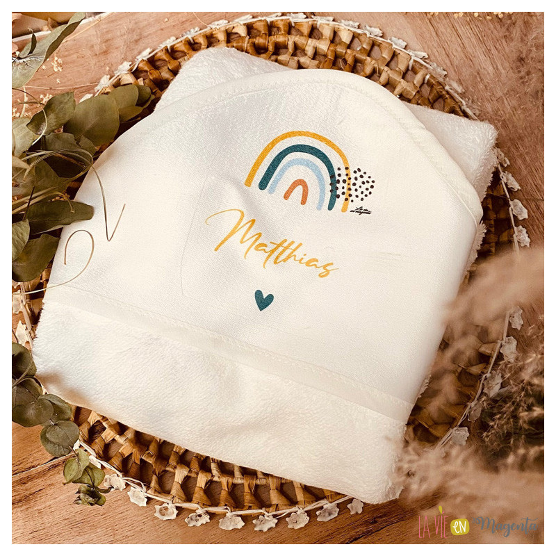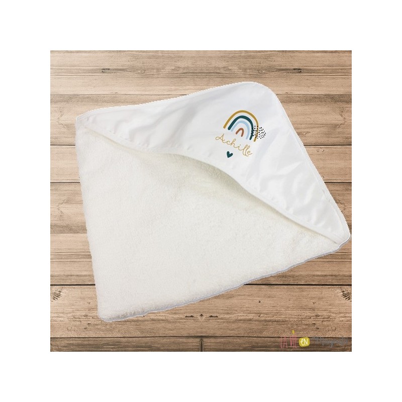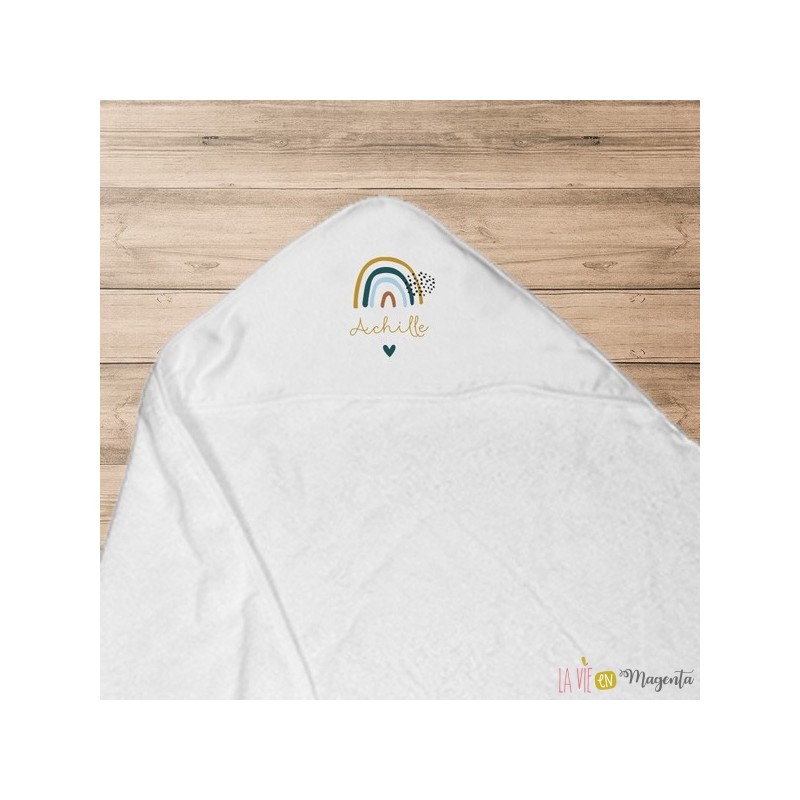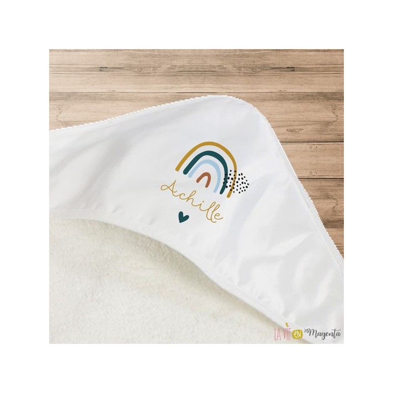 Jolie cape de bain personnalisée sur le thème arc en ciel aux couleurs garçon