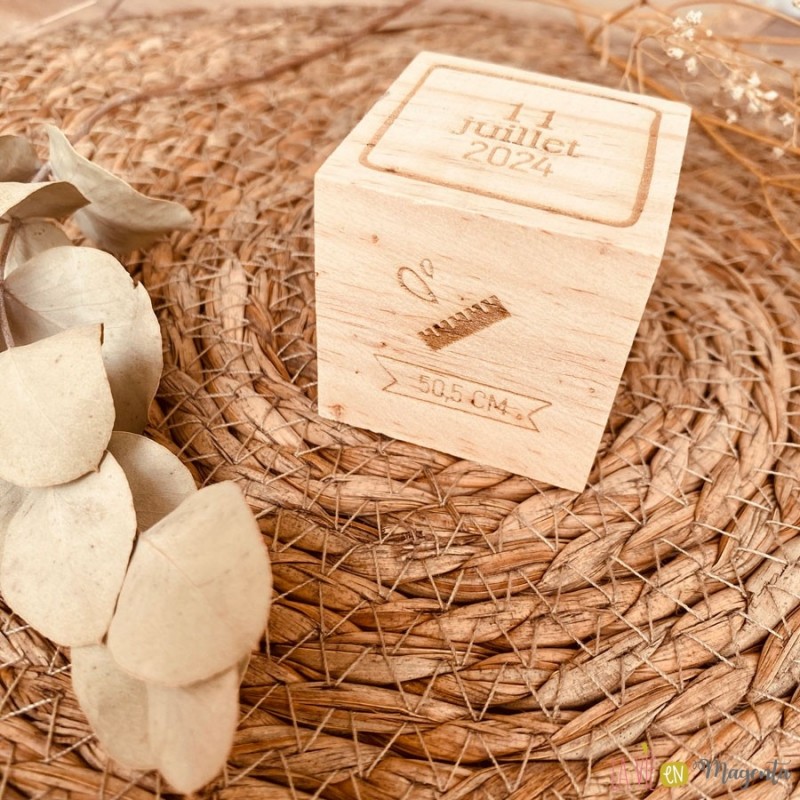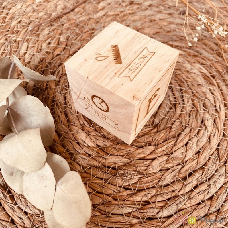 Nous gravons sur le cube les informations de naissance telles que la date, son poids, l'heure de naissance et sa taille et son prénom. (à indiquer en commentaire lors du passage de commande)