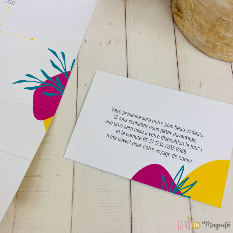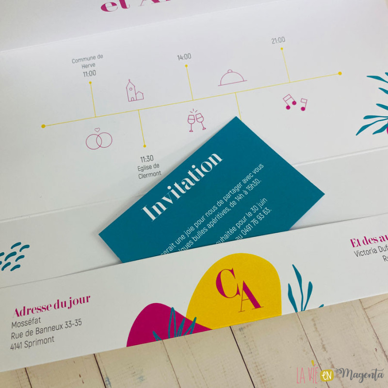 Un modèle idéal pour les couples qui souhaitent annoncer leur mariage avec audace, fraîcheur et originalité, tout en conservant une belle finition.