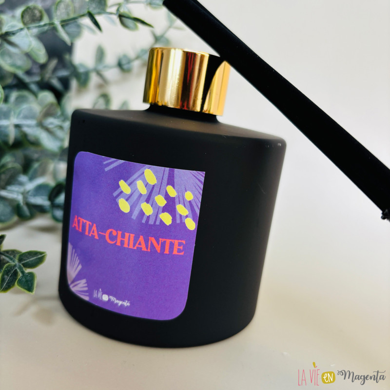 Diffuseur parfum noir mat avec bouchon doré et bâtonnets noirs. Messages au choix : humour, amitié, amour ou encouragement. Un cadeau déco original, idéal pour un anniversaire, une crémaillère ou une petite attention. Parfum élégant et design moderne.