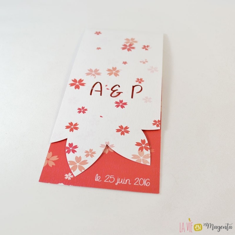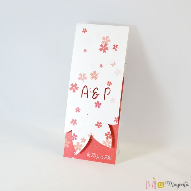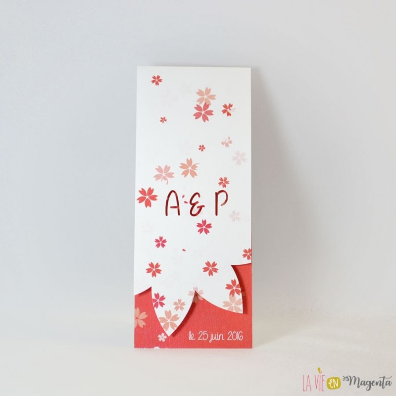 La couverture est également découpée en pétales de fleurs, laissant ainsi apparaître la date de votre mariage.