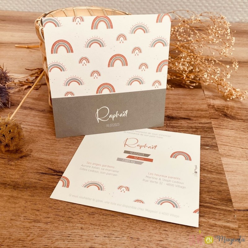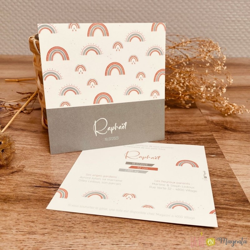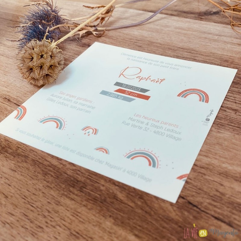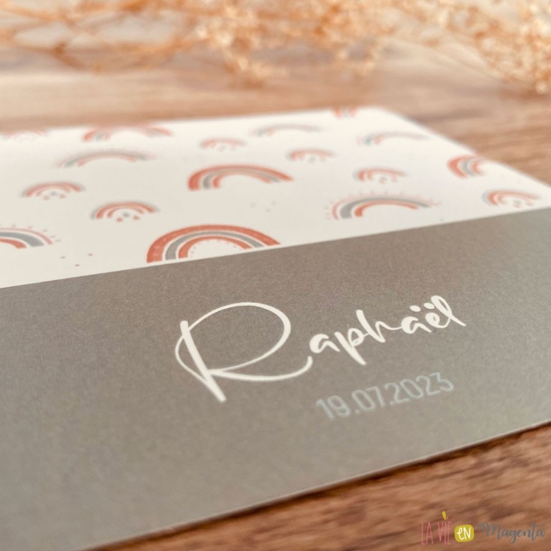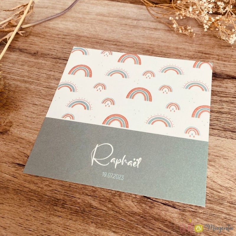 Vous recherchez un faire-part de naissance tendance ? 'photométéore' est le faire-part de naissance qui vous convient ! Ses couleurs douces et actuelles ainsi que son joli motif arc-en-ciel saura annoncer avec beaucoup de douceur la naissance de votre enfant.