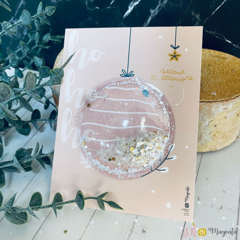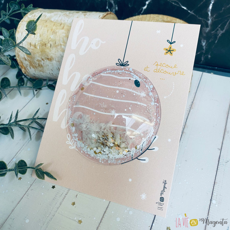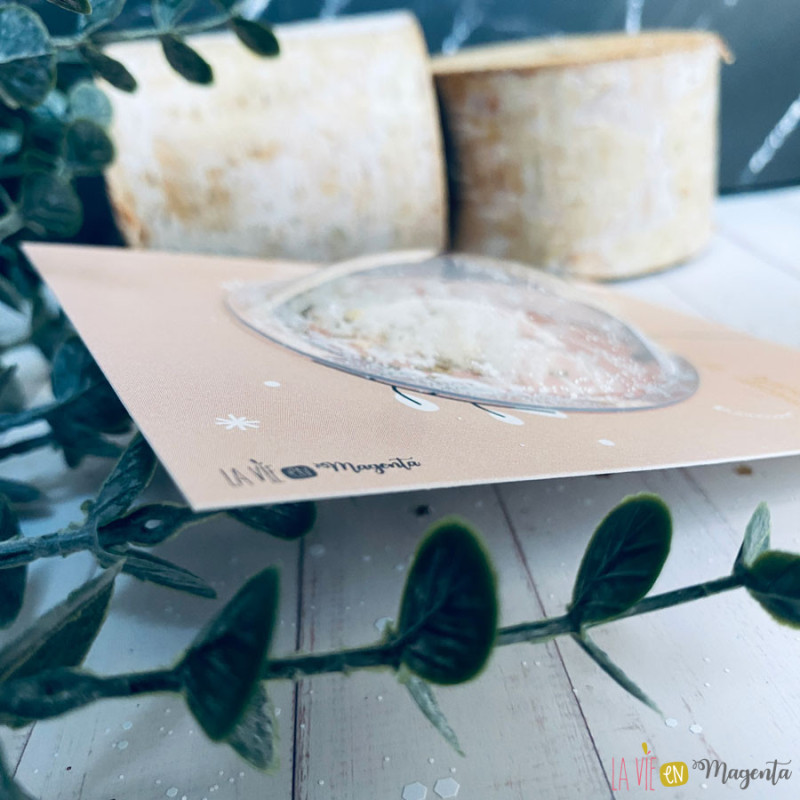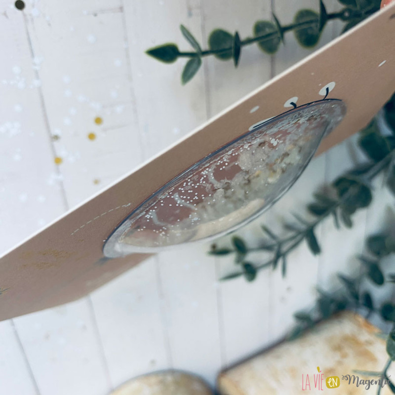 Cette carte surprise est dotée d’un dôme transparent en relief, rempli de paillettes mobiles. Le message est volontairement dissimulé pour créer un effet waouh à la découverte. Un joli souvenir à conserver, bien au-delà de la demande.