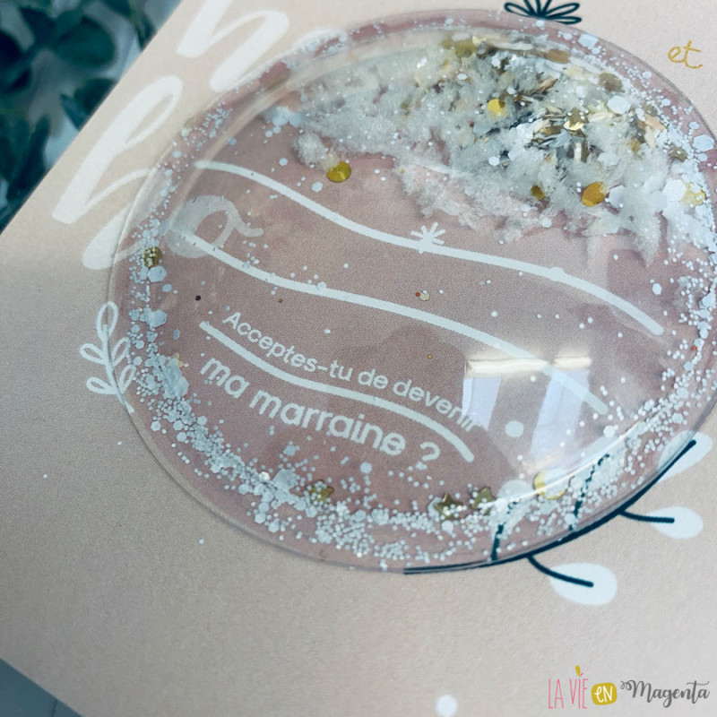 Faites une demande de parrain pleine d’émotion avec cette carte originale à secouer.