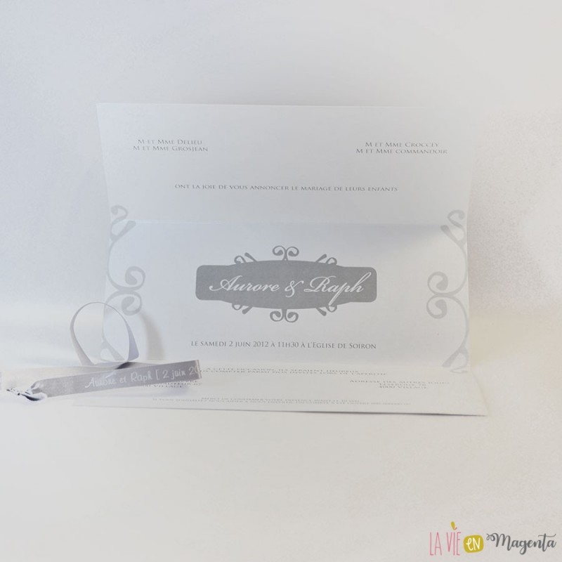 Le coût du faire-part est dû à la personnalisation du ruban. Si vous souhaitez ce faire-part avec un ruban traditionnel, le prix sera revu à la baisse.