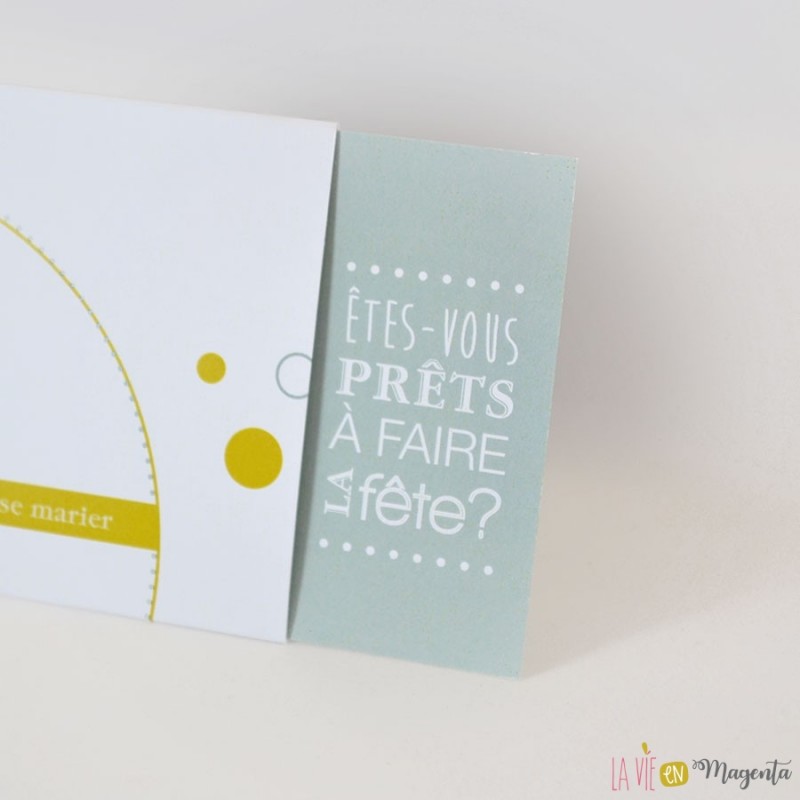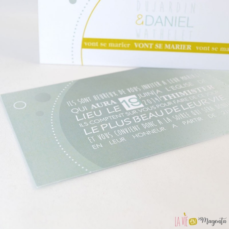- d'un carton d'invitation glissé dans la pochette :