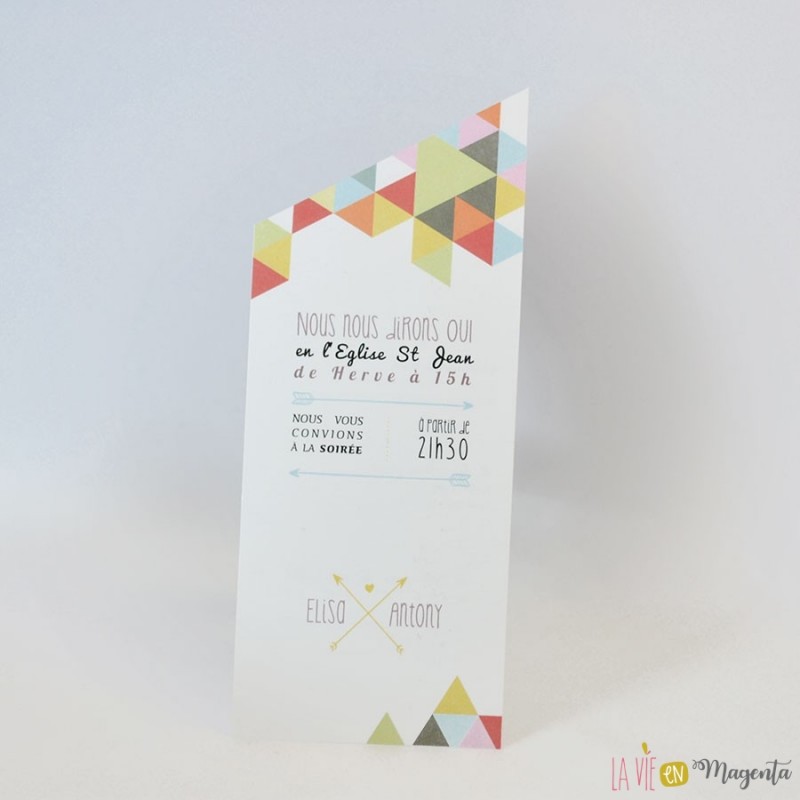 - le faire-part imprimé en recto/verso avec une découpe particulière pour rester dans le style géométrique