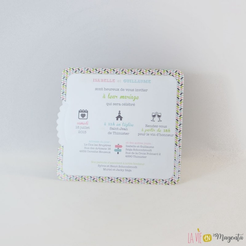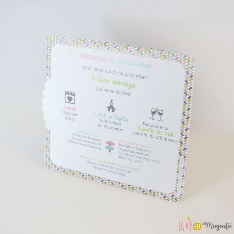 Au dos de ce faire-part, vous trouverez toutes les informations pratiques : date, heure, invitation, adresses et autres !
