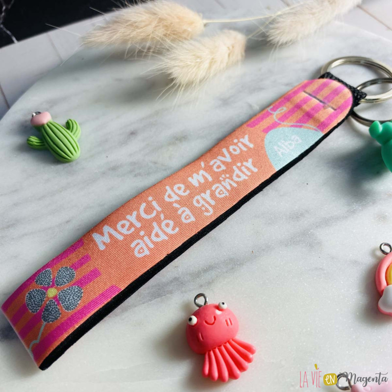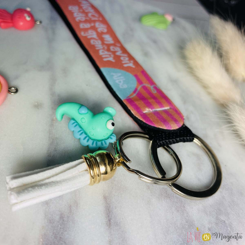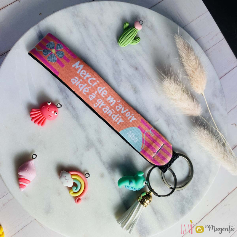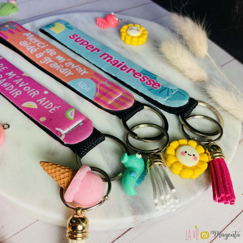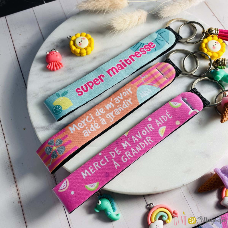 Porte-clés lanière coloré – Merci à la meilleure des maitresses, puéricultrices, cadeau pour la crèche