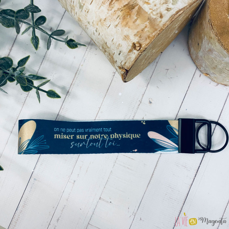 Chaque porte-clés est imprimé par sublimation sur une face, avec une phrase pleine de personnalité au choix :