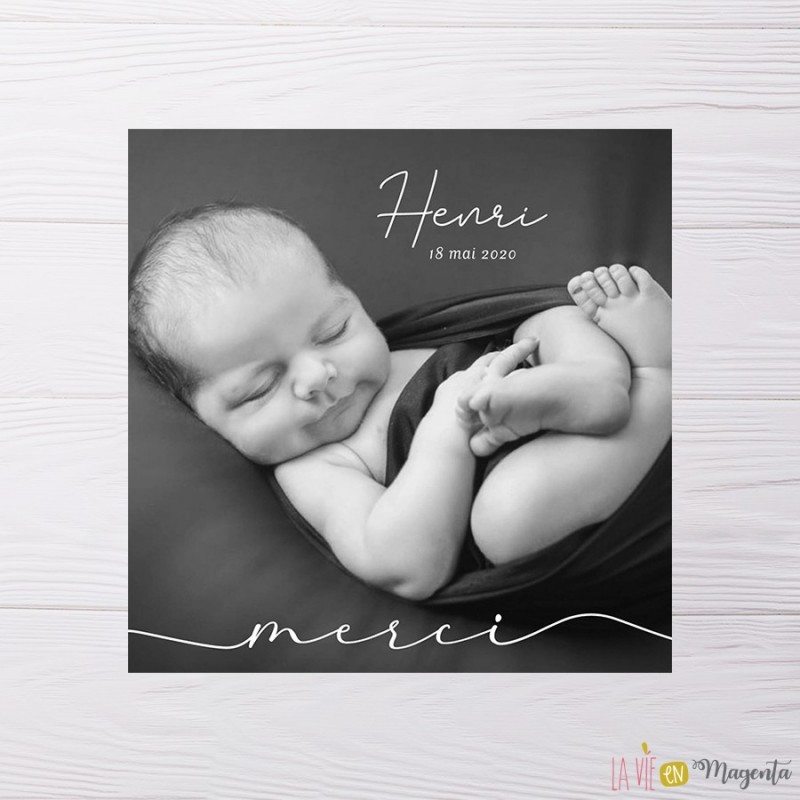 Remerciement naissance photo noir et blanc