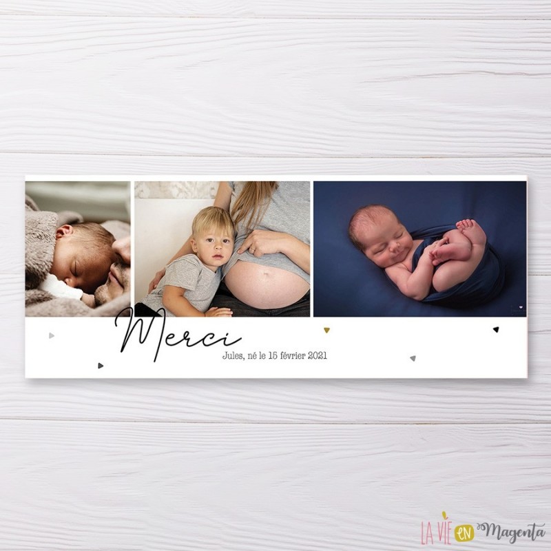 Possibilité de modifier les couleurs du remerciement aux couleurs du faire-part assorti (et ce, gratuitement).