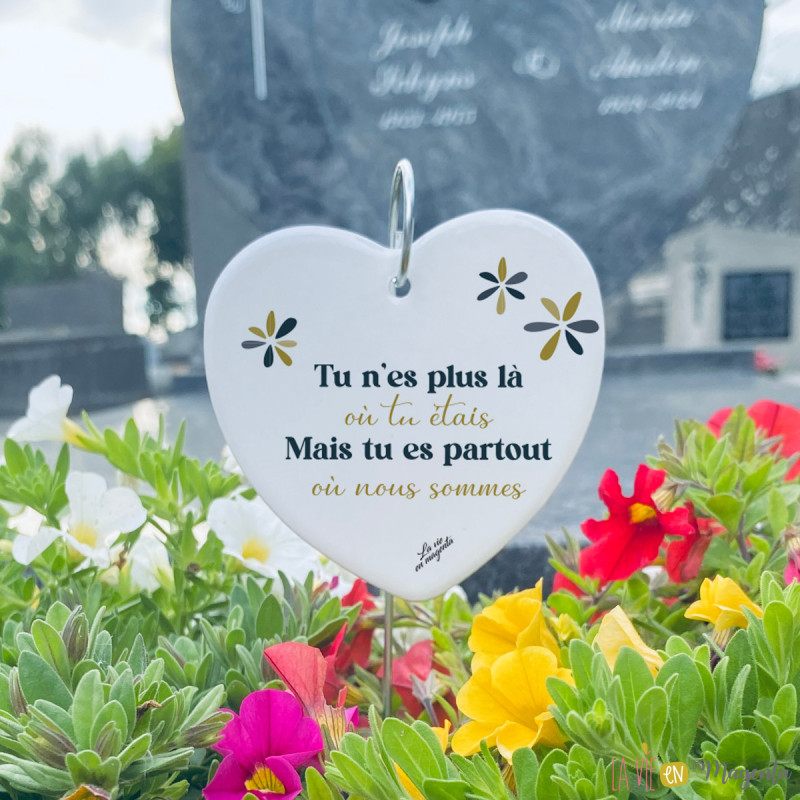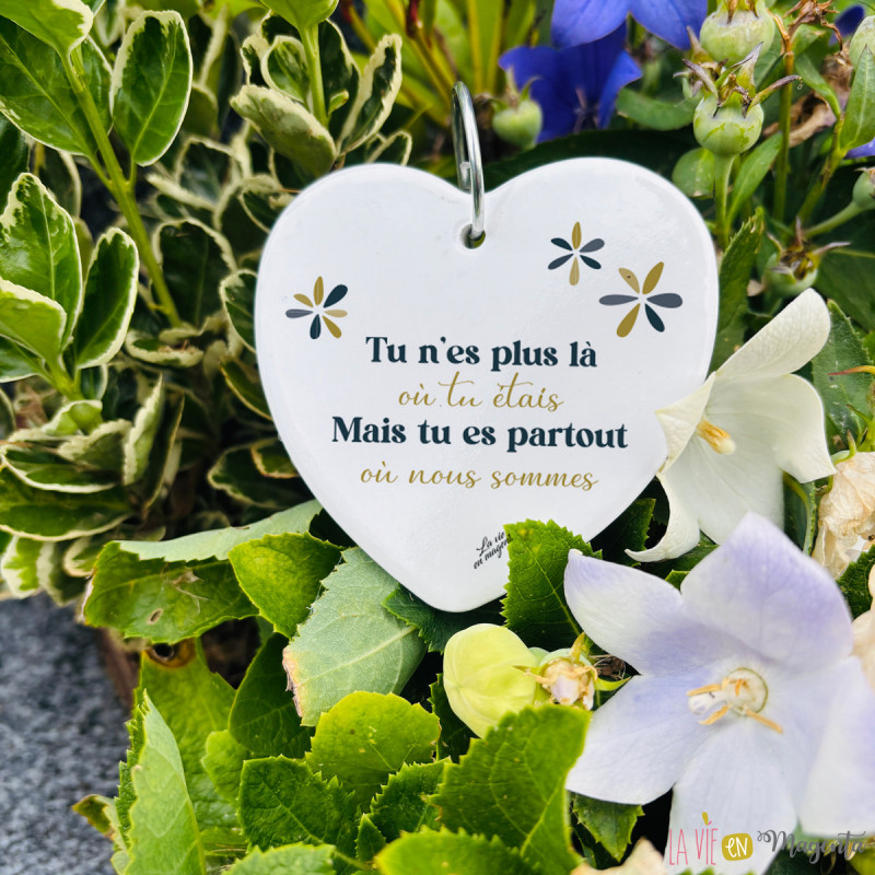 Avec ses messages modernes et chaleureux, ce cœur décoratif se distingue des ornements traditionnels et apporte une touche contemporaine aux moments de recueillement.
